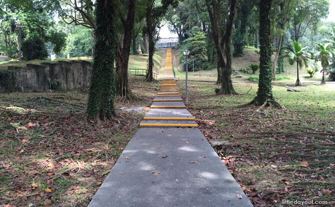 For those itching for more adventure, go further on to the meandering forest path with steps leading to 10-storey high lookout points around one side of the quarry. At the end of the footpath, kids with boundless energy will probably want to race up the 121 concrete steps. This place is of historical significance and the storyboard at the base of the long flight is a good spot to relate to them the history of World War II. The steps were built by 500 to 800 Prisoners-Of-War and used to lead to the Syonan Chureito, a memorial by the Japanese to commemorate the soldiers who died. Today, the Mediacorp Transmission Centre stands in its place.