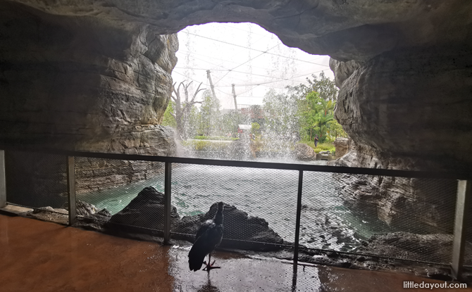 With the backdrop of a floating village in South America, a waterfall over 20 metres high that pays tribute to the old Jurong Bird Park’s Waterfall Aviary. You can take a walk behind the waterfall and experience the roar of the water at its mightiest.