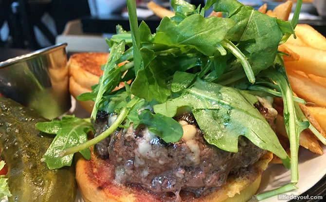 We decided to go with the Fried Mozzarella ($14) for starters and the All-American Burger ($22), the Pizza Burger ($22) and the award-winning Greg Normal ($26) for the mains. The burgers come served with French fries by default, but we chose to substitute the fries on two of the burgers to onion rings for an additional $3 per order.