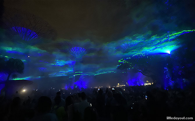 It makes use of smoke machines and lasers to create the mysterious Northern Lights come to life under the Supertrees at Supertree Grove.