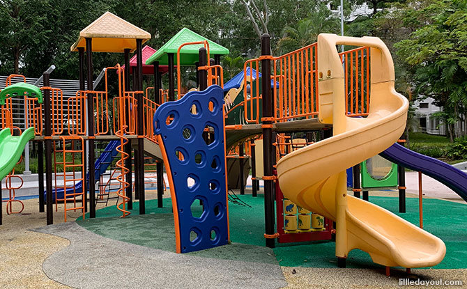 The name Brontosaur Park conjured up “big things” in our minds when we came across it. Would there be dinosaurs at this Pasir Ris neighbourhood park, or would there be a dinosaur at the Brontosaur Park playground, or would there be any special theming at the park?