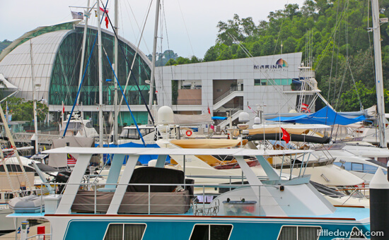 Beyond the Boardwalk is the waterfront condominium, Reflections at Keppel Bay. Walking by the curved condominium silhouette, the well-kept promenade leads visitors past the Marina at Keppel Bay. The Marina with its dock, full of boats, effuses a contemporary and swanky ambience and has eateries that are open to the public. It is connected to the waterfront promenade by the 245 metre long, cable-stayed Keppel Bay Bridge.