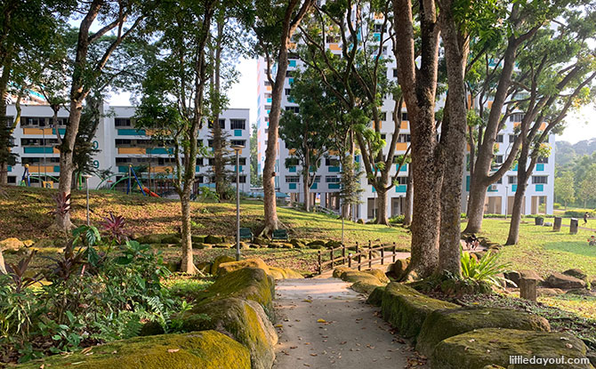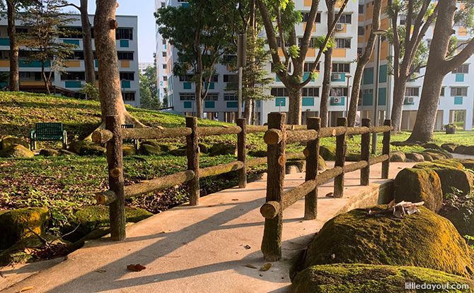 One of the most distinctive features that visitors to Bukit Panjang Neighbourhood 2 Park will notice is its interesting landscaping. The park’s pathways are lined with medium-sized granite boulders.