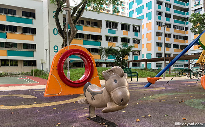 The Bukit Panjang Neighbourhood 2 Park playground also has a rotating swing that kids can climb inside and a horse-shaped teeter-totter for toddlers to ride on.