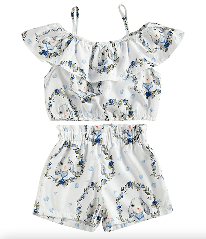 BeQeuwll Toddler Girls Short Suit Bunny Egg Outfit, $18.93 – $20.39