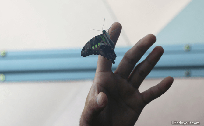 The vivarium is temperature- and humidity-controlled and if you find it slightly warm, that’s because the environment is designed to suit the butterflies, not humans. As cold-blooded creatures, butterflies need warmer temperatures of around 29 to 30 degrees Celsius to remain active.