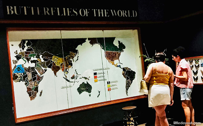 Continue on through this man-made cave of insects, and you’ll find yourself in the air-conditioned Museum displaying the likes of beetle and butterfly fossils, and world maps.