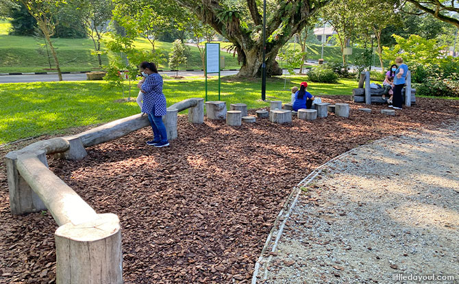 In the final section, you can do a Log Jump, a Stump Jump and Sit-ups using the “equipment” fashioned from none other than logs. Designed for teenagers and adults, this is one spot you can log in to get fit.