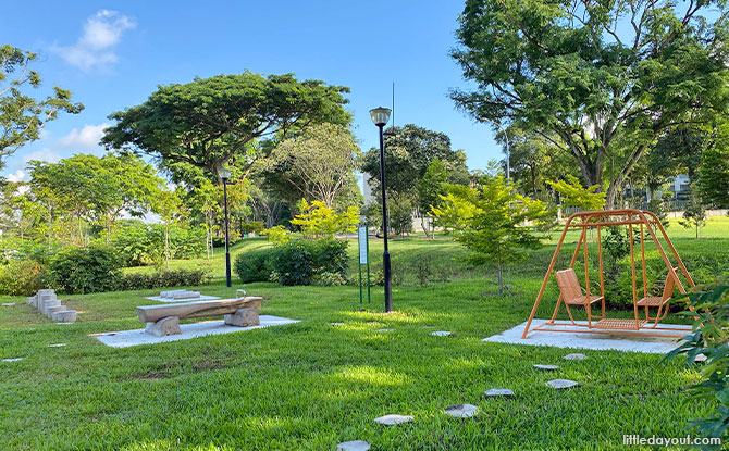 If not for the two bright orange swings just off Tanglin Road, across from Rochalie Drive, you might miss this little haven behind the big rain trees completely.