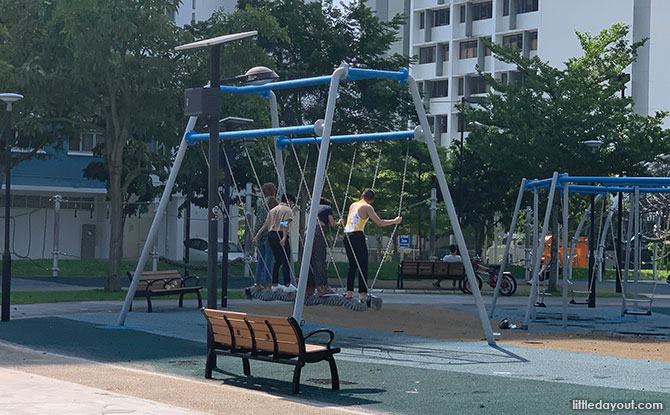 Canberra Park has the largest variety of swings in any playground that we have come across in Singapore. While it can sometimes be hard to find heartland playgrounds with swings, that is not an issue here.