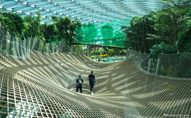 It take a bit of work to move about on the springy surface of the Bouncing Net but this is our personal favourite attractions of all of them at Jewel Changi Airport.