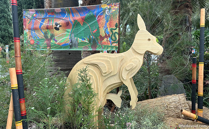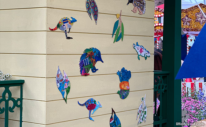 Adding to the charm of the Australia-themed floral display are delightful depictions of beloved Australian wildlife, from cute koalas to life-sized kangaroos and kookaburras.