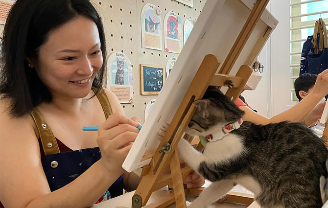 Wildflower Studio combines art jamming with a cat cafe to cater to art enthusiasts and pet lovers. Located at Niven Road, Wildflower Studios works with cat rescuers to run a fostering program. The cats are nursed back to health, socialised and showcased to the general public via the studio’s art jamming platform.