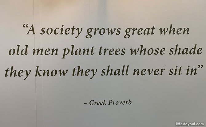 The proverb underscores the point that throughout history, humans have relied on the botanical world for food, shelter, medicine and economic value. These still need to be cared for, even in the modern age, for the sake of future generations.