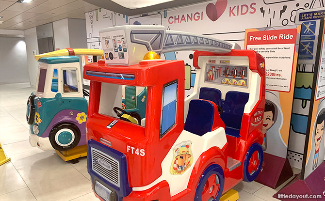 Changi Airport Terminal 1 has a second kiddy ride area on the same level as the children’s playground. This is closer to the restaurants and can be found beside Burger King.