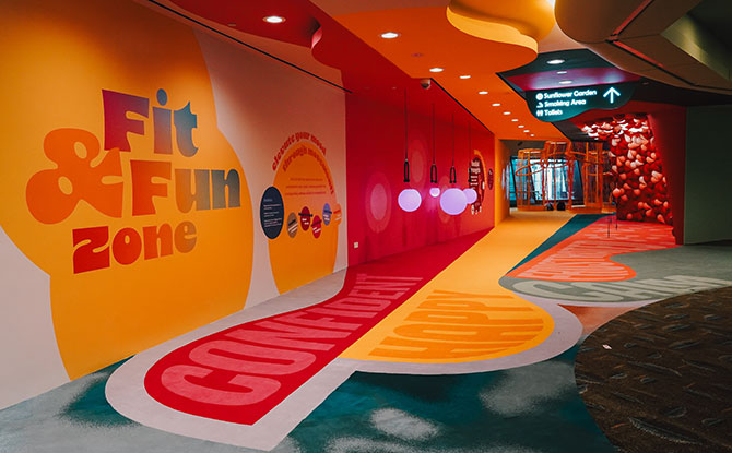 The Fit&Fun Zone spans over 400 square metres and features five coloured zones. In each zone, travellers can participate in various activities to connect with their bodies, rejuvenate, and take a break from the rigours of travel.