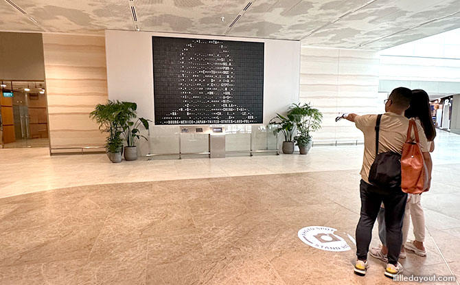 Back in the public area, there is also a kinetic art installation, Flap Pix, on the third floor. This installation makes use of split flaps to create images or portraits.