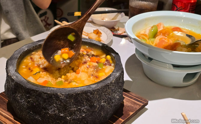 Finally, Chengdu Bowl introduced us to their Mom’s Homemade Rice Pot (S$32,80) suitable for 4 pax. Rice and crispy, puffed rice in a beautiful looking pot, soaking in this rich, thick and flavourful gravy made from simmering abalone, prawns and a colourful combination of vegetables.