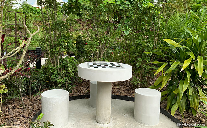 A heritage area provides a look at gardens from Singapore’s past and even has an old-school chess table – the kind you’d find at void decks at HDB flats.