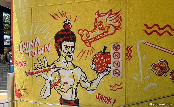 Next to Chinatown Complex, Banda Street also sports various street art, part of the 2015 Colouring Banda Street project by PwC and Tanjong Pagar Town Council.