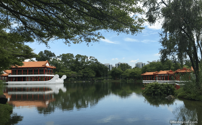 Chinese Garden is built in the northern Chinese imperial architectural style of the Song Dynasty (AD 960-1279). As a result, you will find unique landmarks such as the Stone Boat and Tea House within its grounds.