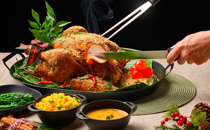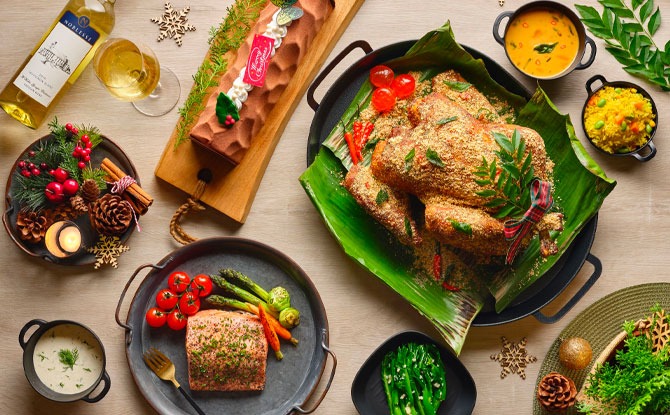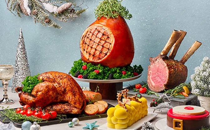 Mains include a Charcoal Grill Surf & Turf, celebratory live stations with cuts such as Marinated Roast Turkey with Giblet Sauce and Christmas Stuffing, Honey Glazed Gammon Ham and Turkey Rendang Cheese Naan Pizza. There will also be a selection of Christmas desserts such as Hazelnut Chocolate Log Cake, Mango Log Cake and Christmas Tarts. Read more here.