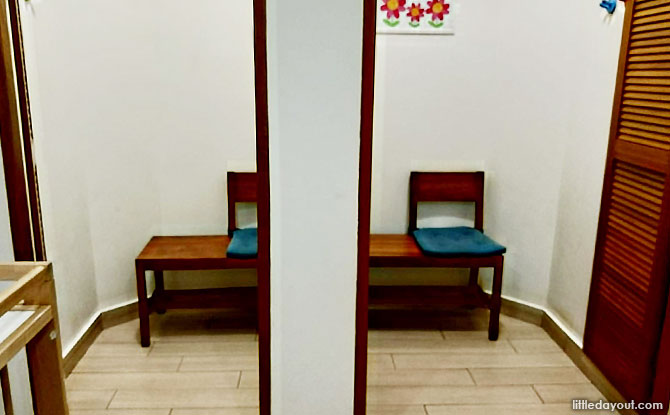 Each breastfeeding room is furnished with a bench and electrical point, making it a convenient and private place for nursing mothers to breastfeed or express in peace. Do note that access to the nursing room is only granted upon pressing the intercom as an additional security measure to ensure that the space is not misused.