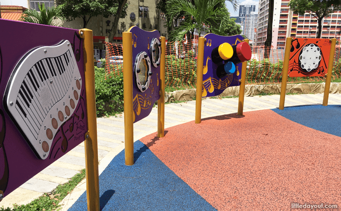 Around the outdoor City Square Playground are music-themed play panels for little ones.