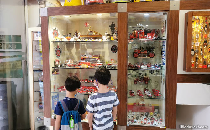 The lobby of the museum is a feast for the eyes with the display of helmets, memorabilia, miniature toys and badges of fire fighting services all over the world.