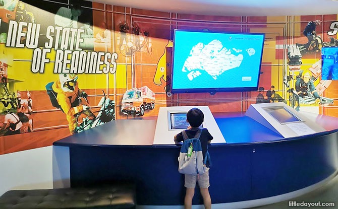 At the SCDF Emergency Preparedness Centre, children will be able to see the numbers of SCDF stations around Singapore, as well as its equipment or fleet of transport. One piece of equipment that we often seen – the Red Rhino is featured prominently. It allows fast and timely response to emergencies as explained in a video.