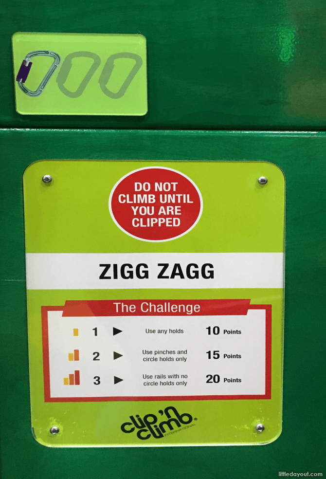Surrounded by walls of all different colours, textures and shapes, we decided to choose the first wall based on the difficulty. This is indicated by the number of “clips”, ranging from one to three, for the wall.