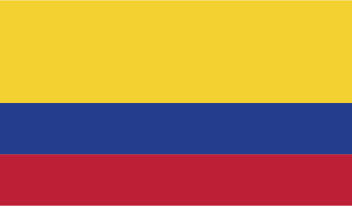 The flag of Colombia features three horizontal bands of yellow (top, double width), blue, and red.