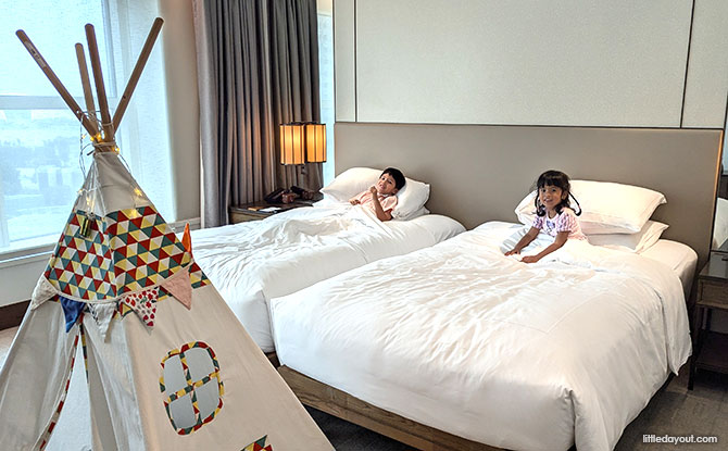 Our kids were utterly thrilled with the host of charming kid-friendly amenities that came with the Family Escape package, including a stationery and colouring set and fluffy child-sized bathrobes and slippers.