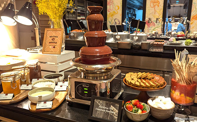 End off your meal on a spectacularly sweet note, with the decadent 70% Valrhona chocolate fountain, lavish spread of artisanal handcrafted cakes and pastries (our top picks are the lava cheese tart and apple crumble), and premium ice cream which is always a hit with the kids.