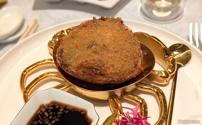The Panko-crusted Crab Meat on Crab Shell was a highlight of the meal with its varied textures and flavours, while the Adler Wood-Smoked Fried Pomfret was a theatric experience in itself, served in a glass dome that was opened with a flourish to reveal the smoking fish within.