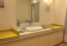 There is a diaper room at Cool De Sac, but no toilet facilities. Locker usage is charged at $1 every time it is opened. Socks can be purchased at $2.30 per pair.