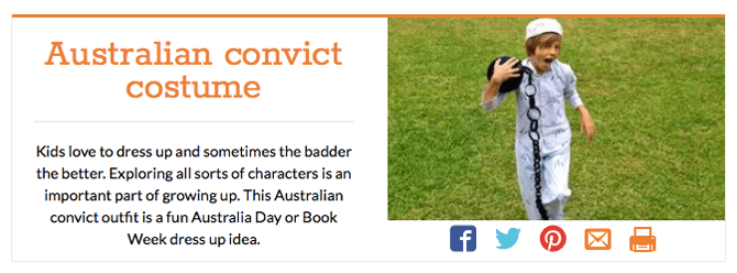 Boys may like to dress up as badass Australian convicts. This costume is relatively easy to make, with the help of the accompanying written instructions and video.