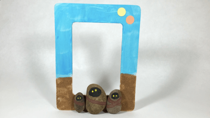 Kids can have fun doing a little scavenging to find the perfect little rocks for this cute Jawa picture frame craft. And even more fun putting all the elements that they have found together to create the final product!