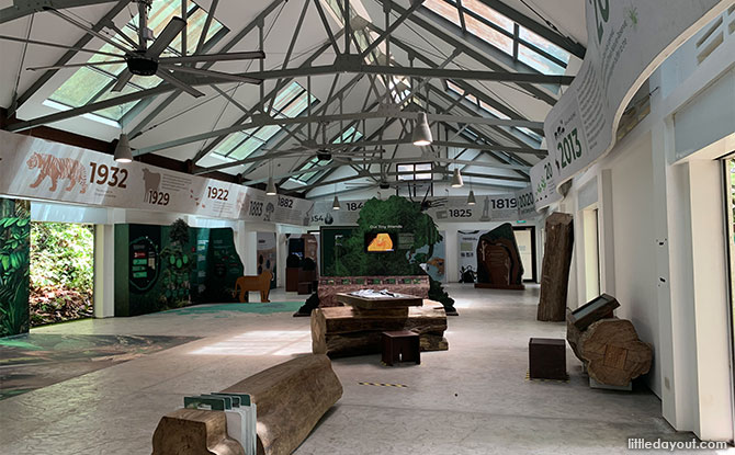 Occupying a former cowshed, the Wallace Education Centre now has a permanent exhibition with different interactive zones. It serves as educational gallery for those who are visiting Dairy Farm Nature Park to learn about the biodiversity found in the Bukit Timah area as well as the biogeography of the wider Malay archipelago.