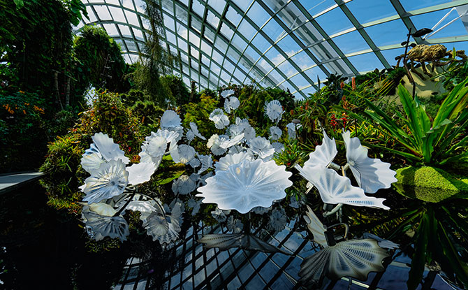 Wander around Gardens by the Bay and you can also enjoy a collection of art, including sculptures like the Moongate. Now, within the Cloud Forest dome, there is yet another piece which visitors can enjoy – Dale Chihuly’s Ethereal White Persians sculpture.