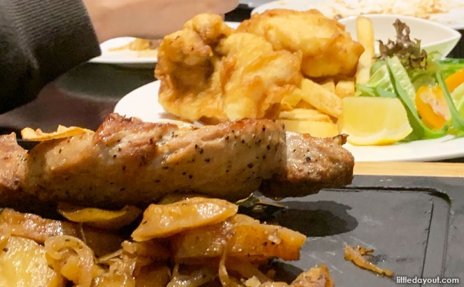 The last dish we tried was the Garlic Butter Pork Ribeye. It came served with some potatoes generously topped with carmalised onions as well as a garden salad on the side. We appreciated that the thickness of the meat was substantial for a good bite and also tender making it easy to cut and eat.
