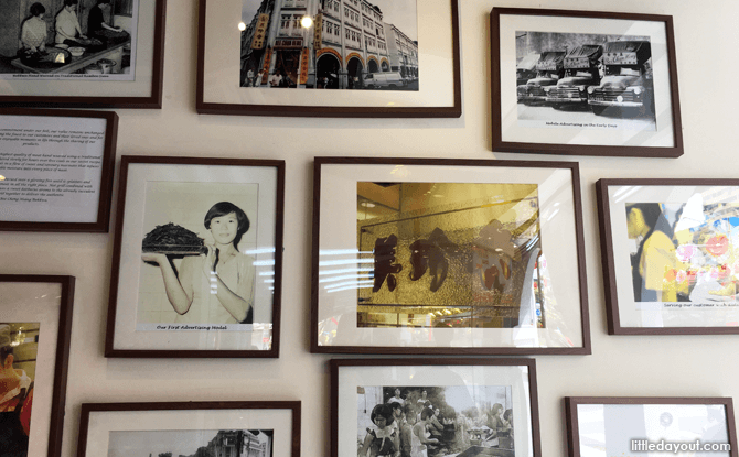 Bak kwa is a favourite treat for many, especially during the Lunar New Year period and Bee Cheng Hiang has been doing it for a long time. With a history dating back to 1933, you can find out more about bak kwa past and present at the Bee Cheng Hiang’s store at the corner of Mosque Street and New Bridge Road. Its heritage wall are early forms of “mobile advertising” (nothing to do with mobile phones) and its first “advertising model”.
