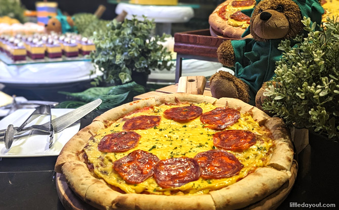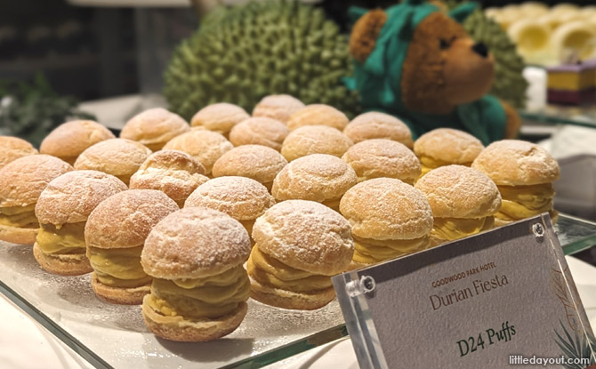 Now, onto the durian buffet at Goodwood Park Hotel’s Coffee Lounge! Featuring only premium D24 durians, the spread includes beloved classics like profiteroles and freshly made pancakes, alongside bold creations such as the Sourdough Pizza, which I found to be a surprising yet interesting blend of sweet and savoury flavours.