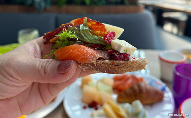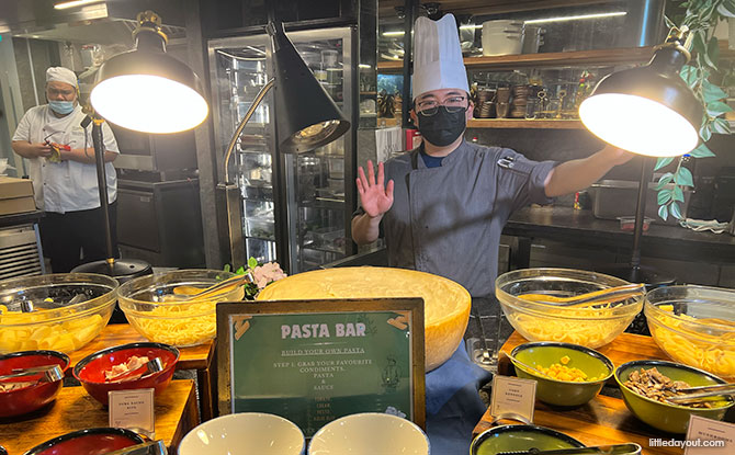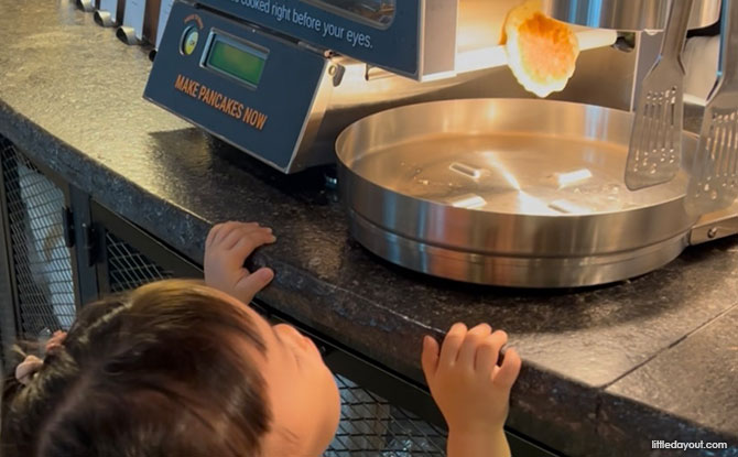 Little Pea was most captivated by the robotic pancake machine which made her appreciate every bite! If you’re staying on a Sunday, don’t forget to check out the Sunday brunch from 12 pm to 3 pm which offers a dedicated kid’s buffet corner and complimentary pool access.