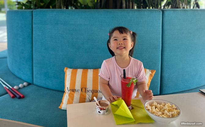 The afternoons at the Tee Deck at Dusit Thani Laguna Singapore were breezy and delightful. The golden period for kids would be between 2 pm to 6 pm to indulge in complimentary fruity slushies, popcorn and ice cream.