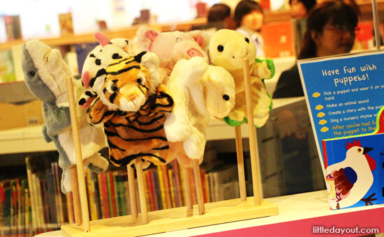 At the Poetry & Rhymes section, other than books on nursery and alphabet rhymes, there are hand puppets available for parents to use to tell their kids stories. Children can even don costumes to bring their favourite tales to life.