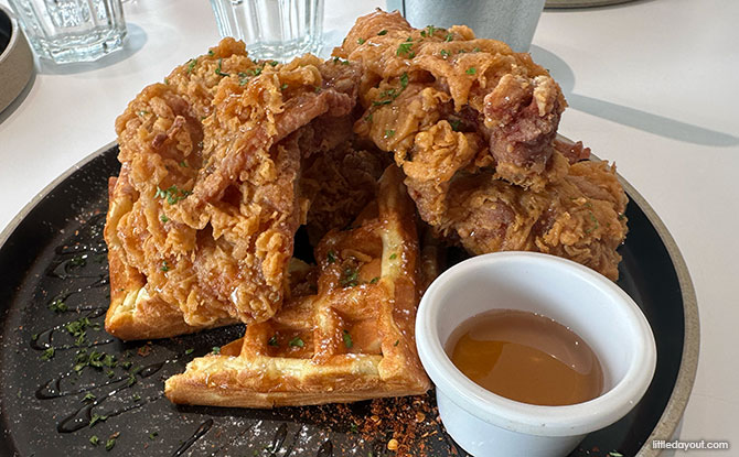 Another item that falls under the Local Delights section of the menu but we would personally classify as a brunch item is the Singaporean Har Cheong Gai Waffles ($22). This is a signature dish at Eden and features crisp shrimp paste fried chicken. This is presented on top of fluffy Belgian waffles. It comes drizzled with spiced maple syrup. We must say that the serving of Har Cheong Gai or shrimp paste fried chicken was quite generous. The dish was a satisfying combination of sweet, savoury and salty.
