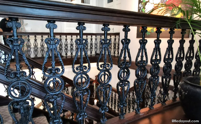 One can also see the unique wrought-iron spindles in the shape of “M” for Manesseh. The owners of the mansion were concerned that these would be removed during the Japanese Occupation hence were boarded up for protection.