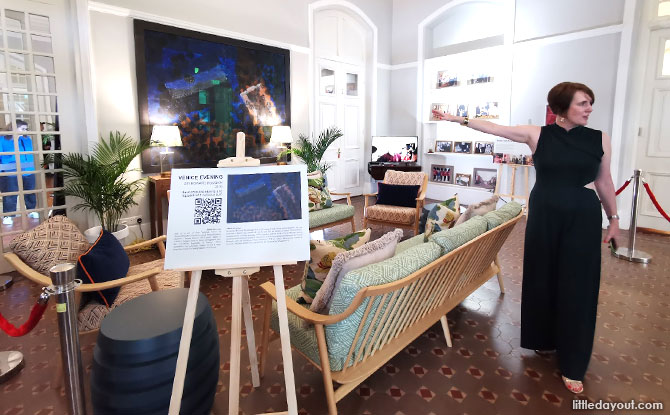 As we entered the entrance hall, we could see different kinds of artwork displayed, from Singaporean artist Kim Lim’s Waterpiece to British artists’ works in the form of art pieces, tapestries and even curtains and other furnishings.