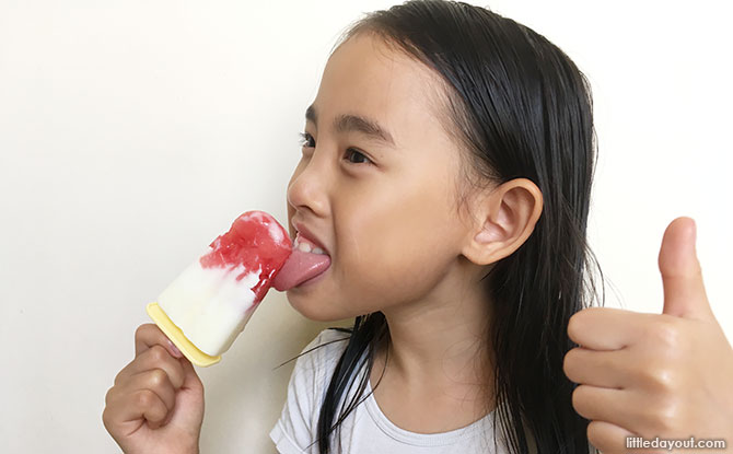 What’s a cool way to celebrate in this tropical weather? With red-and-white themed popsicles! Here’s an edible National Day craft that is extremely easy to make, and fits the occasion perfectly!